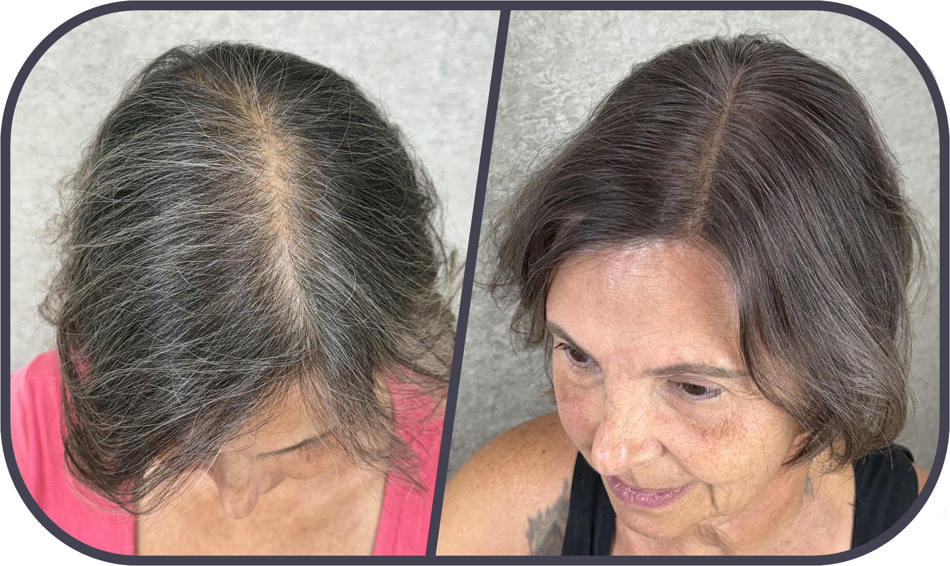 Simula fios de cabelo em áreas ralas, criando a ilusão de um couro cabeludo mais preenchido.